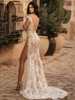 Diamond-Beaded Pink Sheer Gown Spaghetti Strap Pearls Sequins Structured Flowers High Split Mesh Trendy Celebrity Party Gown