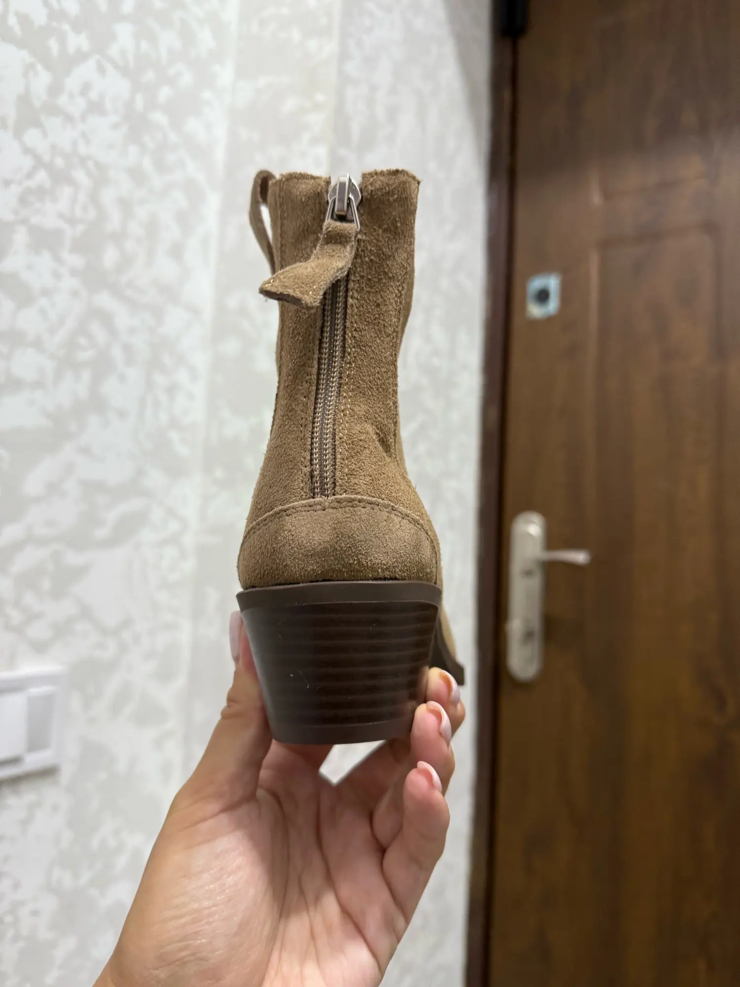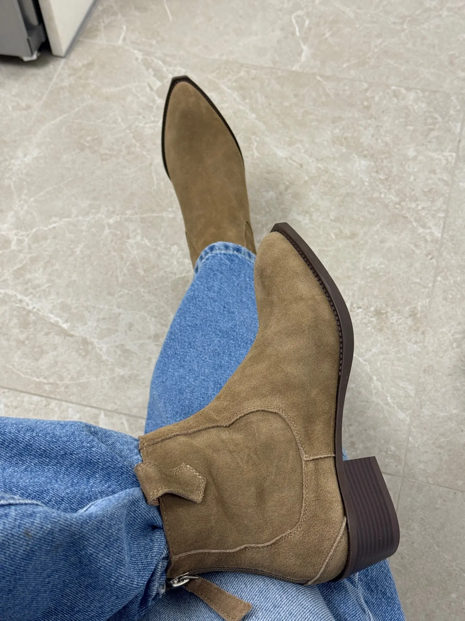 Women's Block-Heel Ankle Boots Pointed Toe Zippered Western Cowboy Boots For Women's Work Boots Female
