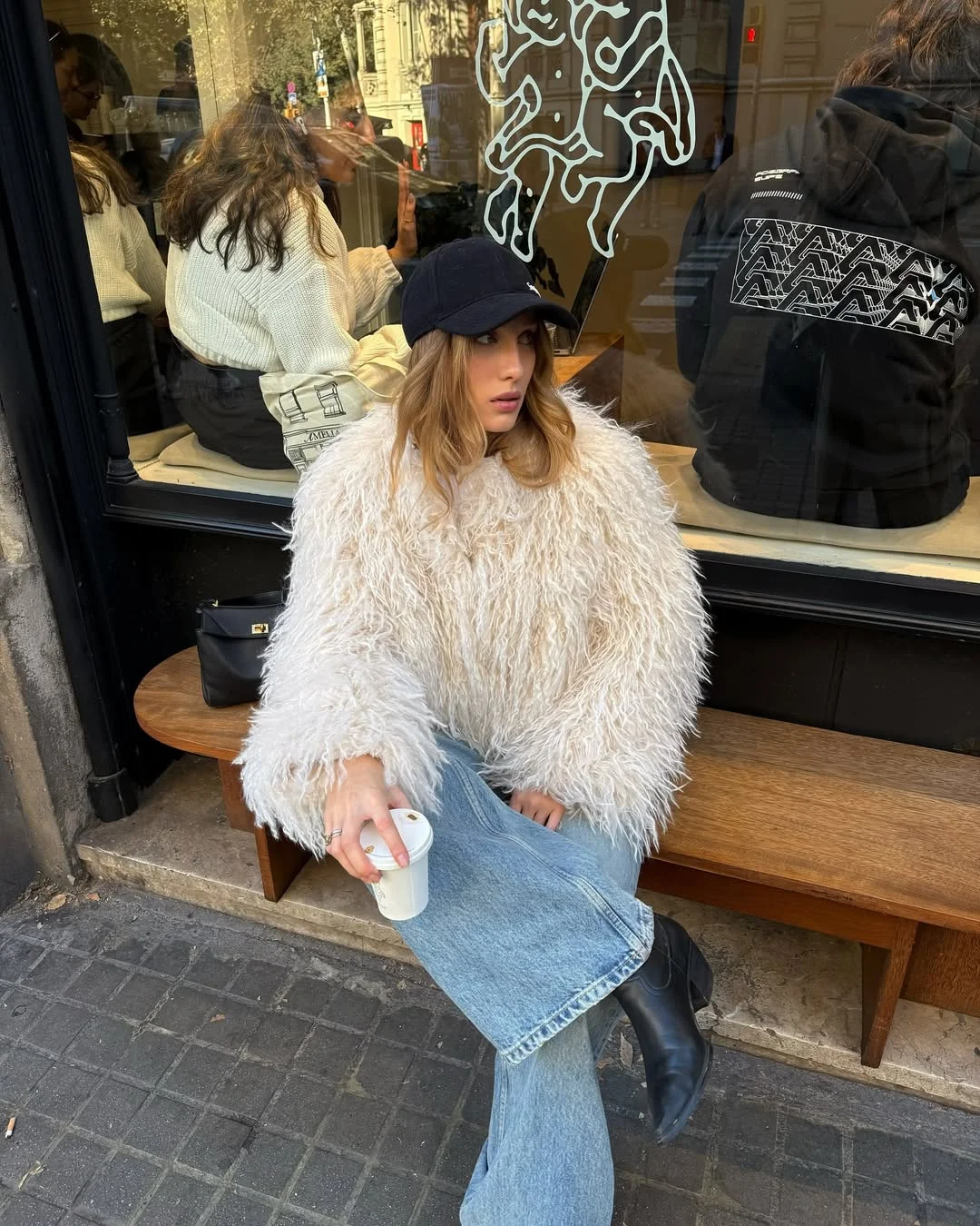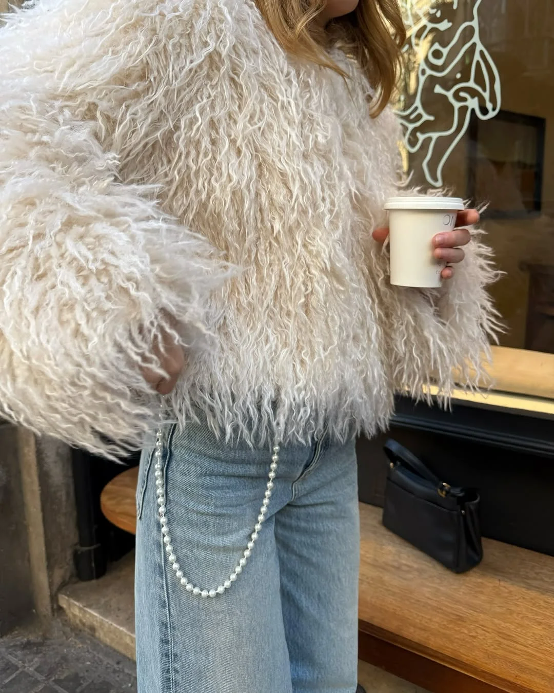 Women's Fluffy Faux Fox Fur Coat Overcoat Winter Loose Luxury Long Sleeve High Waist Patchwork Coat Women's Outwear 2025