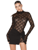 Off Shoulder Long Sleeve Sheer Jumpsuit Women's Fashion High Stretch Hollow Out Sexy Sparkly Party Rompers