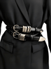 Striking Material Harmony: A robust zinc alloy forms the foundation of the buckle, providing a substantial feel and brilliant gleam. This is perfectly complemented by the sleek, sophisticated allure of faux leather for the belt strap, creating a harmonious blend of textures.