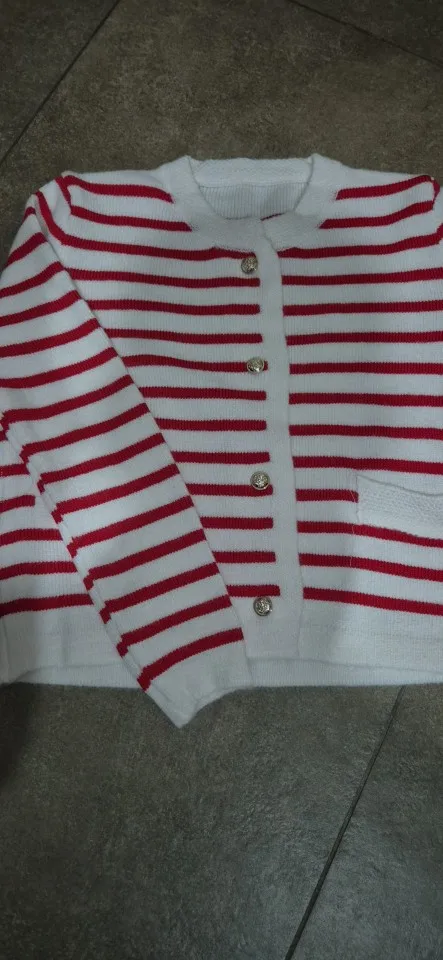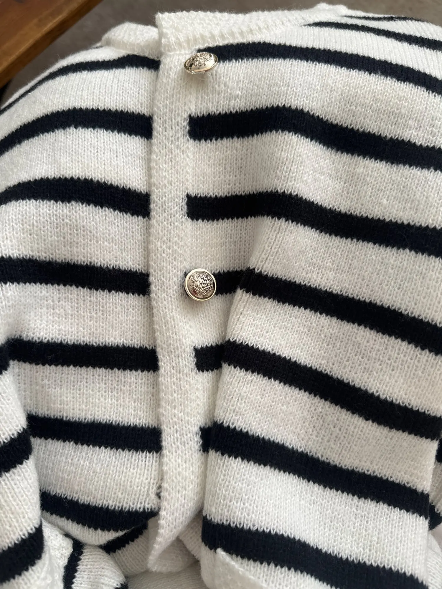 Women's Striped Cardigan Spring Autumn O-Neck Single Breasted Long Sleeve Crop Tops Fashion Casual Chic Female Sweaters