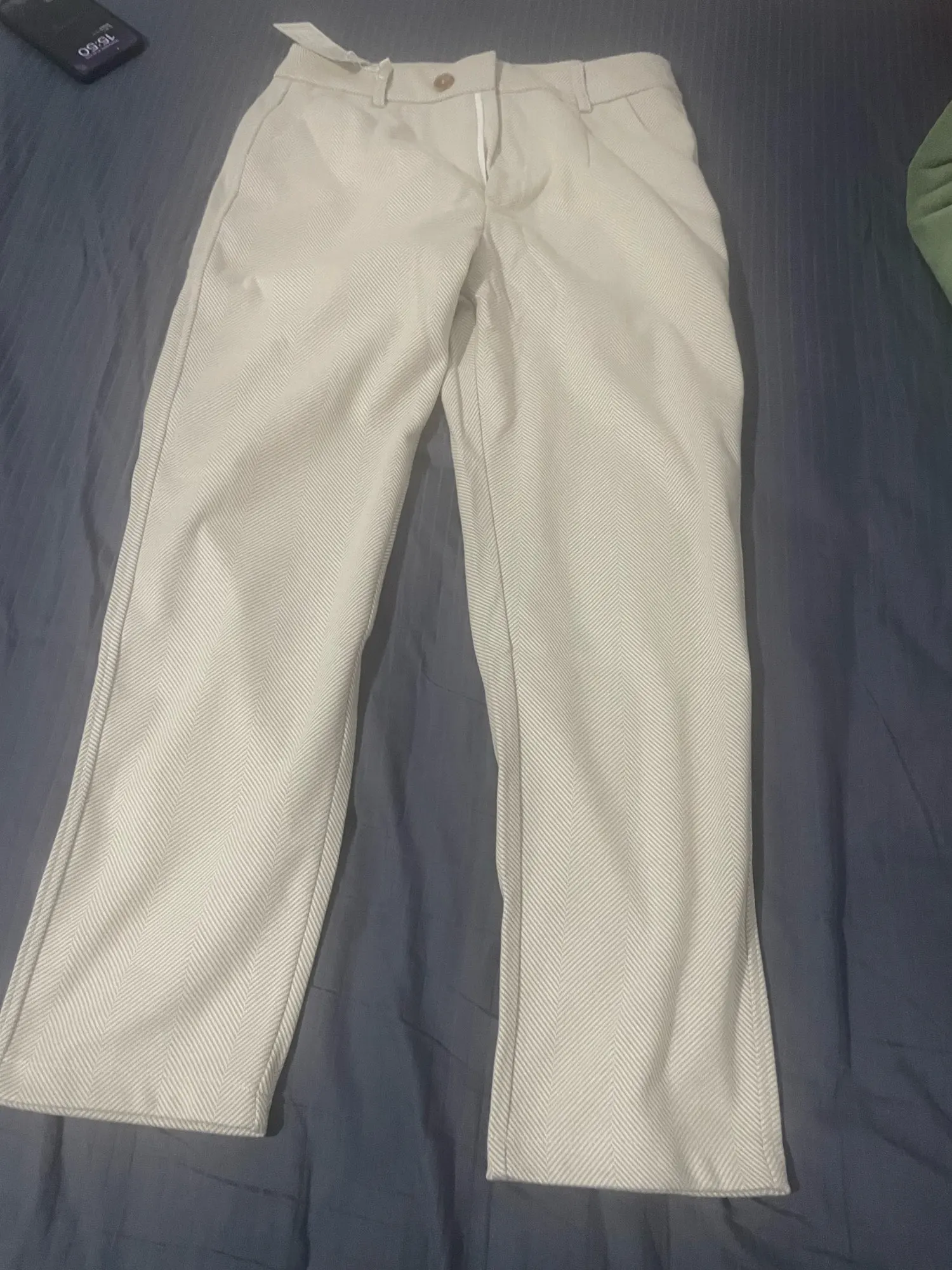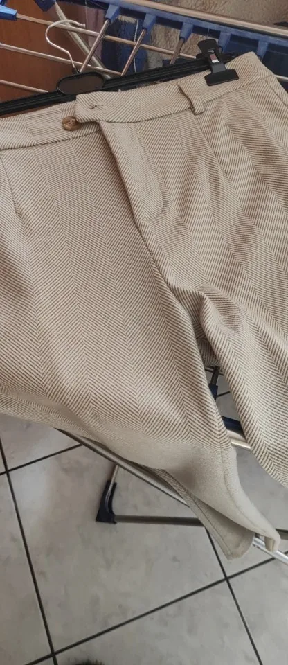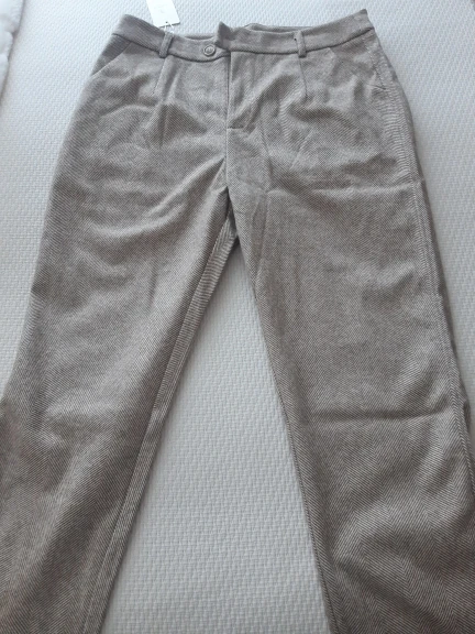The pants are nice, the size is good. The fabric feels like wool. Satisfied.