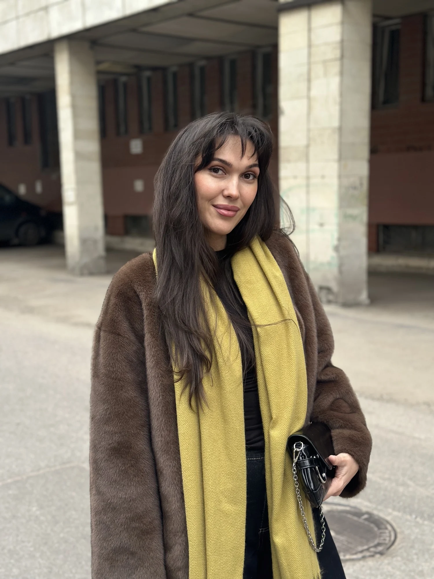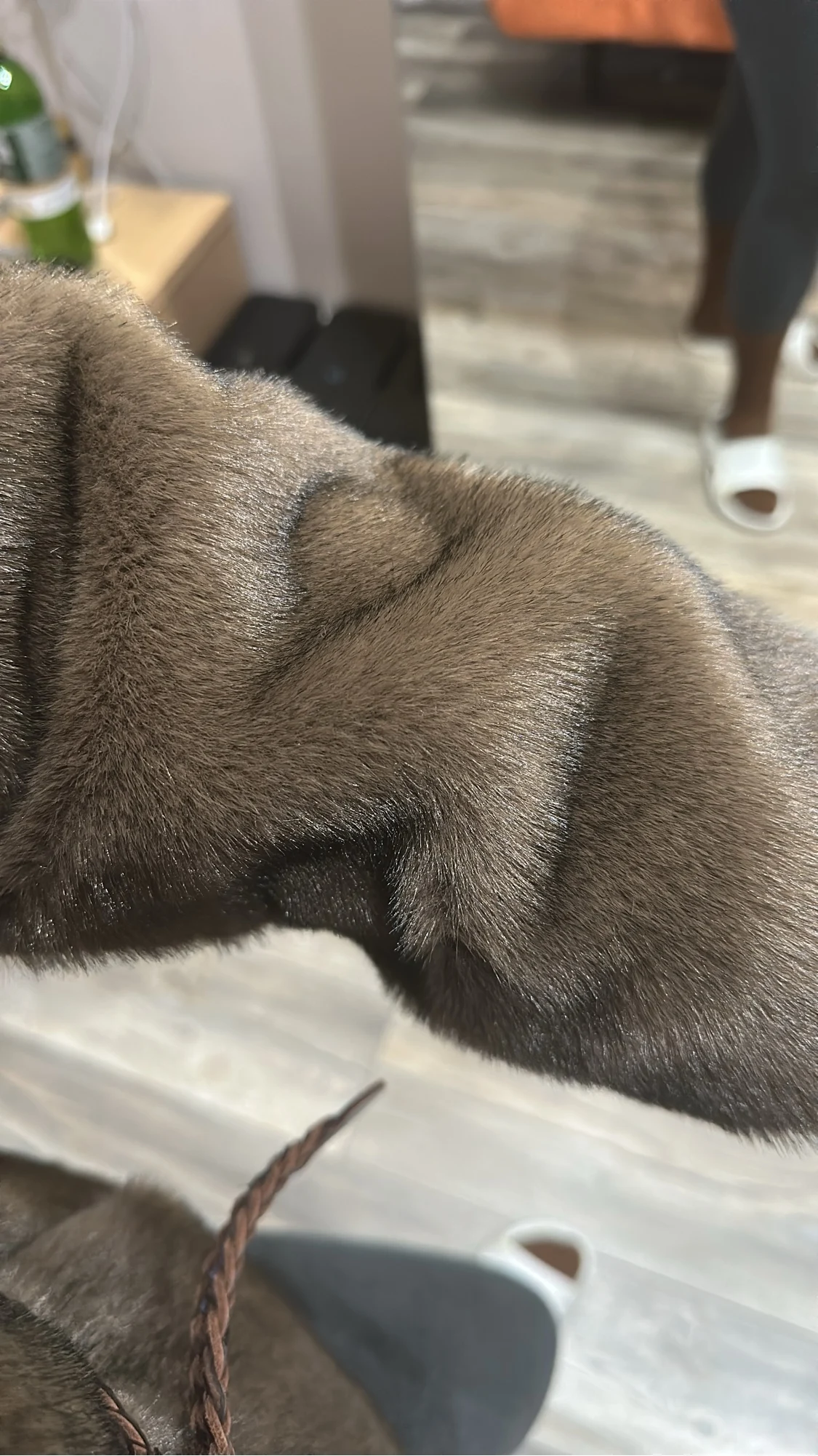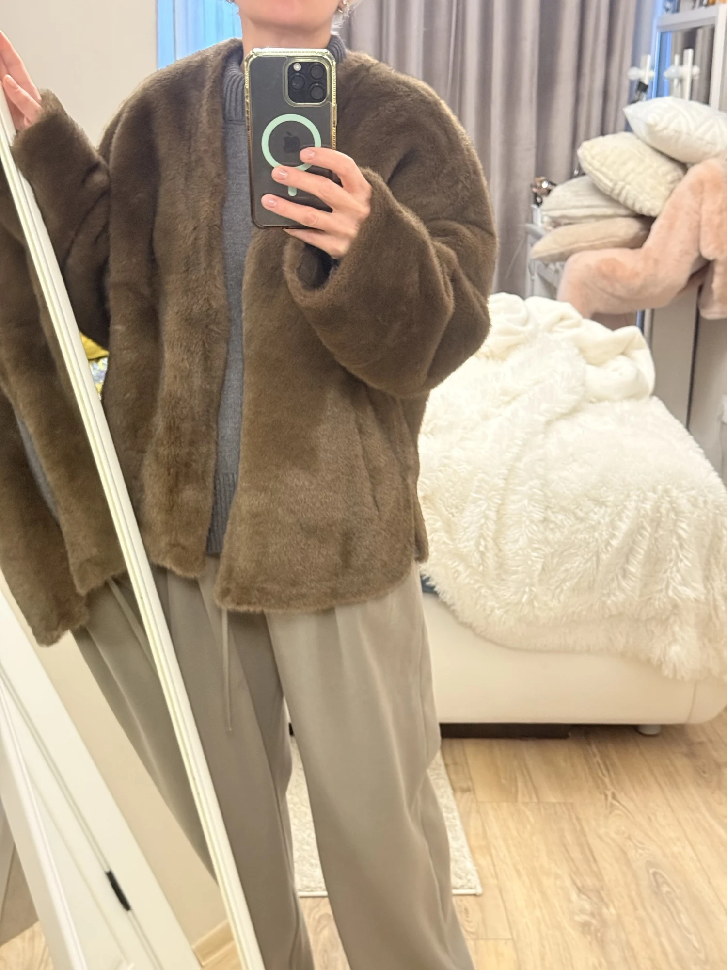 I really liked the jacket, it looks stylish. My size is: height 175, everything fits well, looks slightly oversized. The sleeves fit perfectly. Everyone I know thinks it's real mink. They ask to touch it 😊