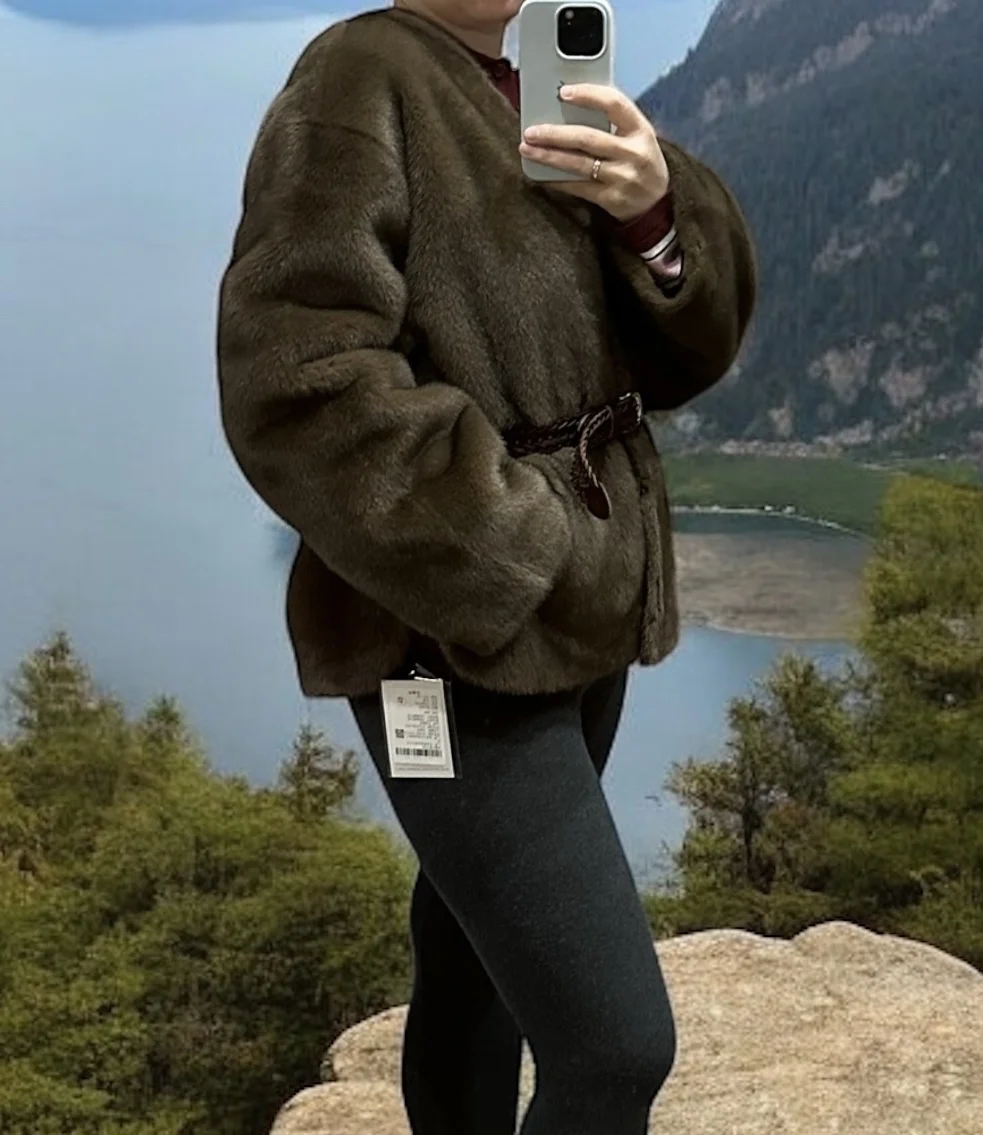 This trendy layering piece shines when styled with monochrome basics, letting its soft texture create natural depth. Add structured trousers for a polished look, or pair with leggings for an off-duty aesthetic that still reads intentional. Incorporate suede boots or a neutral knit scarf to echo the jacket’s warm undertones and build a cohesive autumn-to-winter palette.