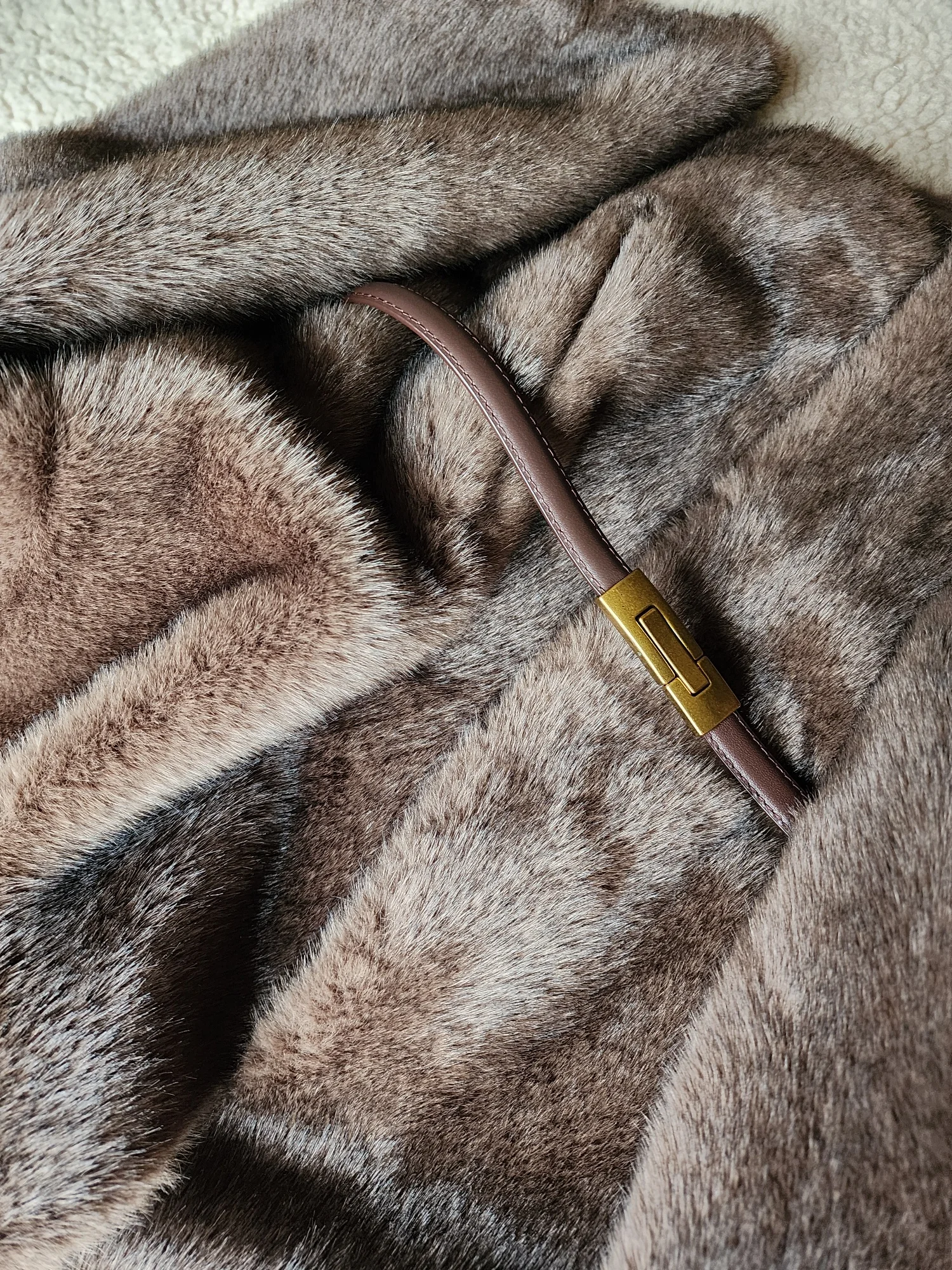 The fur coat is very beautiful! At first glance, you can tell; it looks expensive and luxurious 😁 without lining, quite thin, up to +5 degrees Celsius, beyond that I think it will be chilly. Plus, it's quite large; I don't use the buttons designed by the manufacturer, I button it much higher and around the waist. I recommend buying it, for such money it's a delight 🥰.