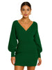 Women's Flare Sleeve Top V-Neck Sexy Slim Ribbed Women's Tops Long-Sleeved Shirt Knitted Shirt