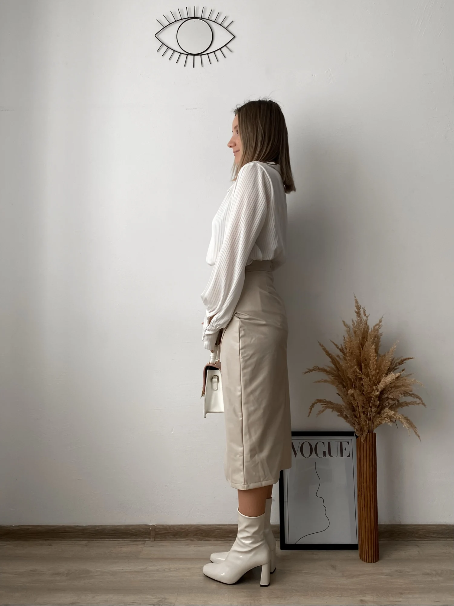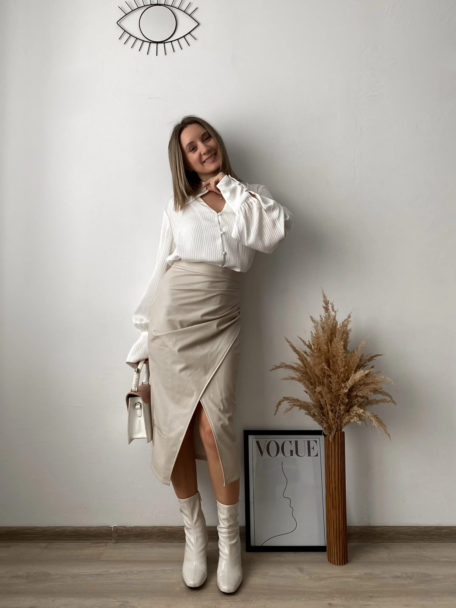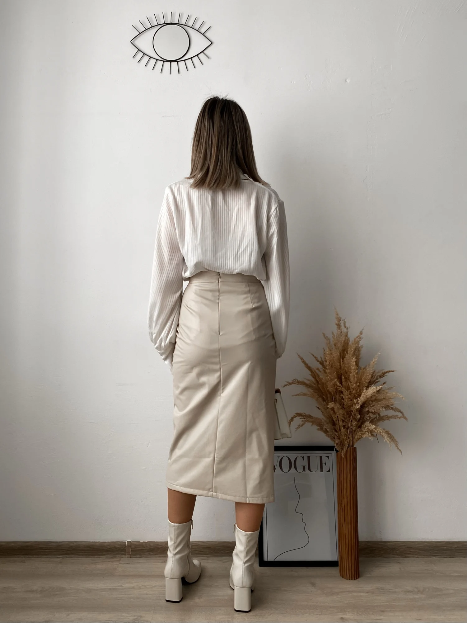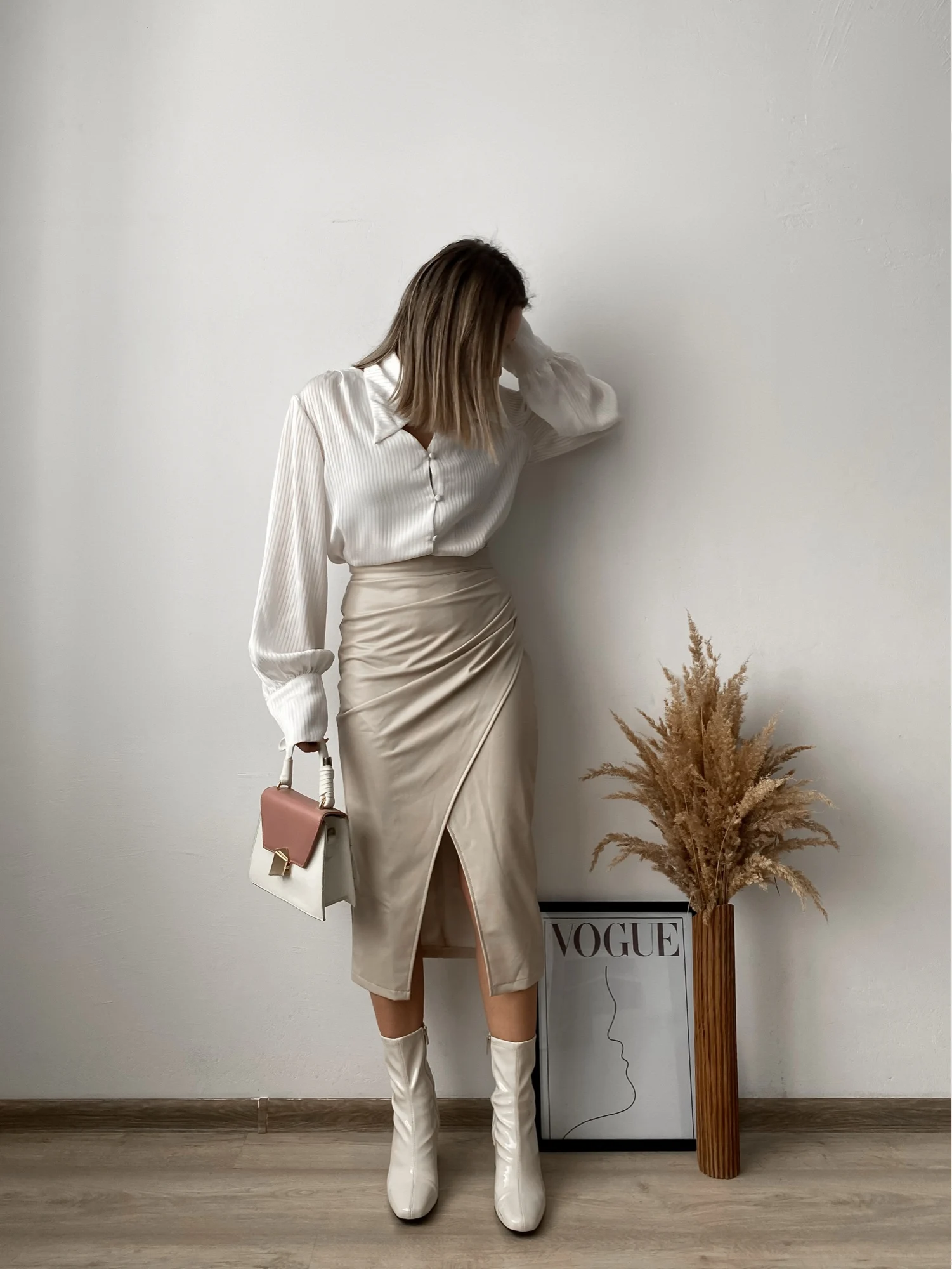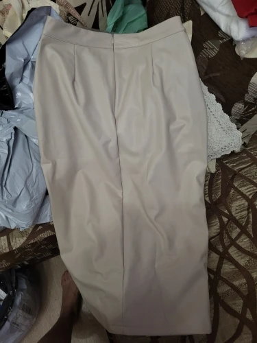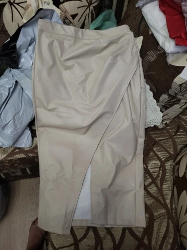 Women's Midi Leather Skirt Sexy Split High Waist Front Slit Skirts Ladies Black Faux Leather Folded Skirt For Women