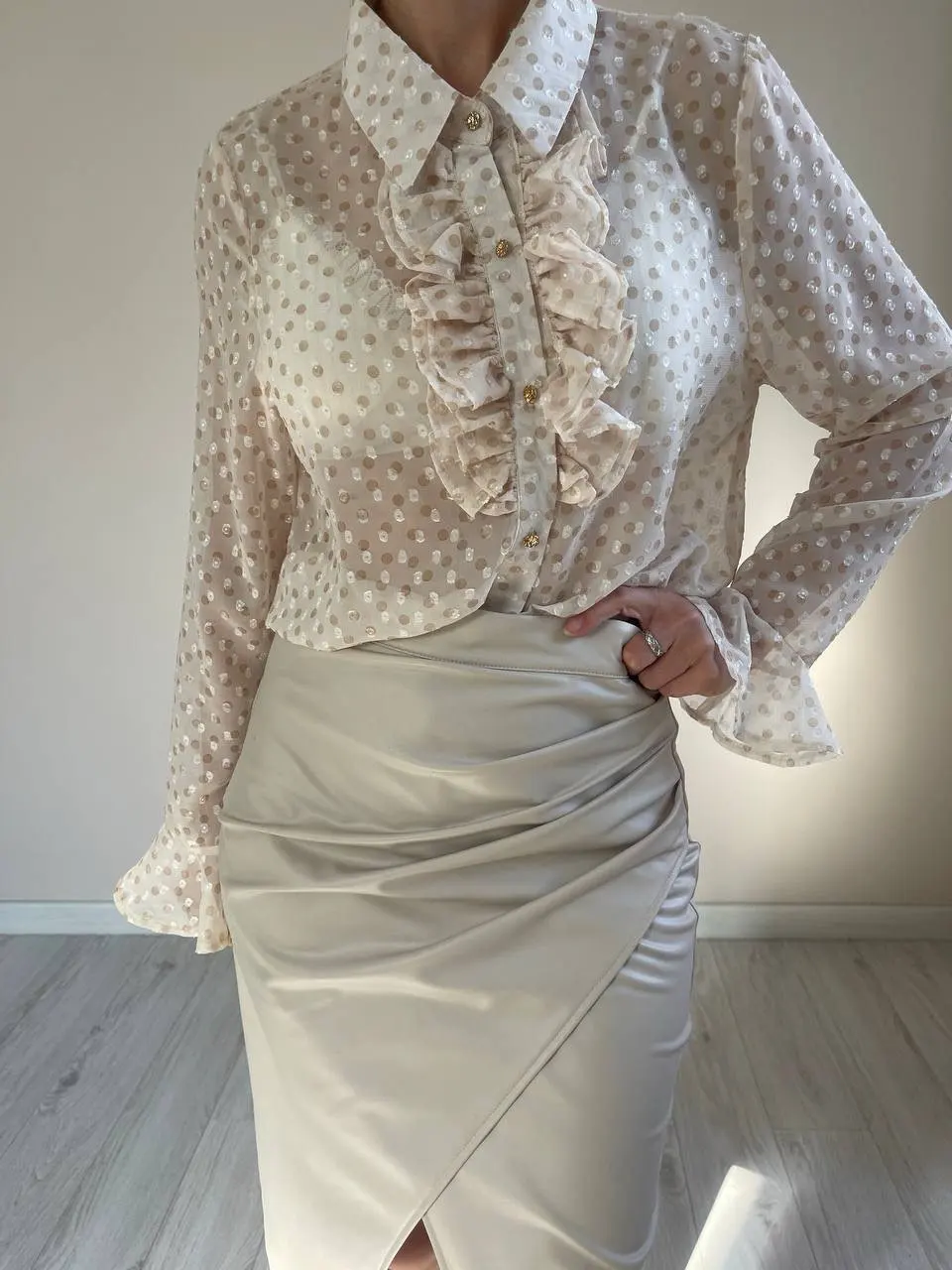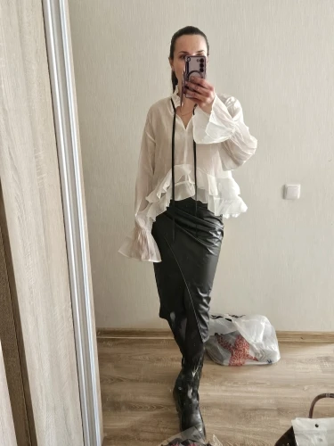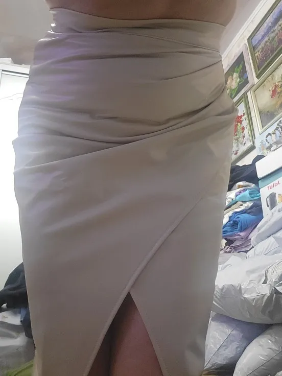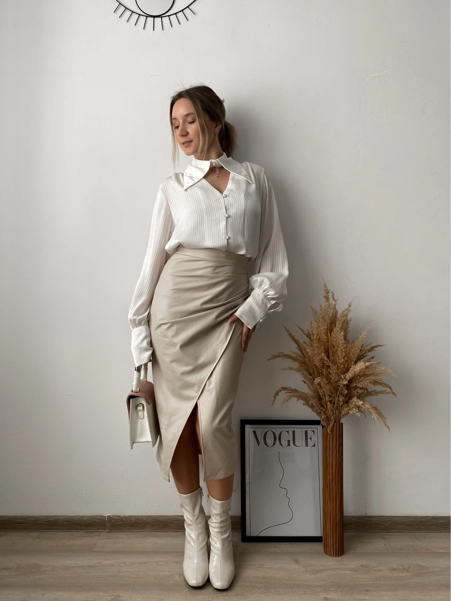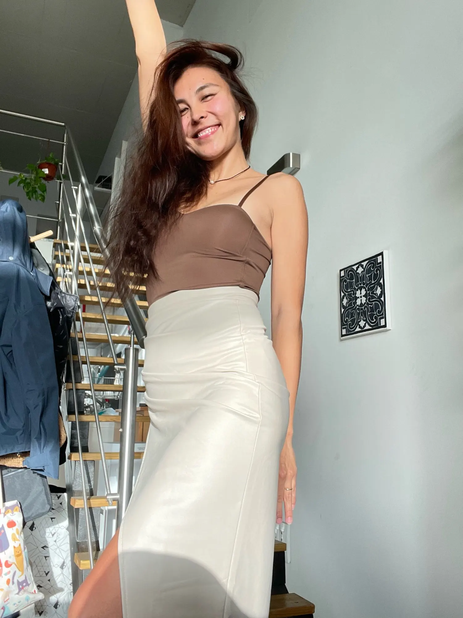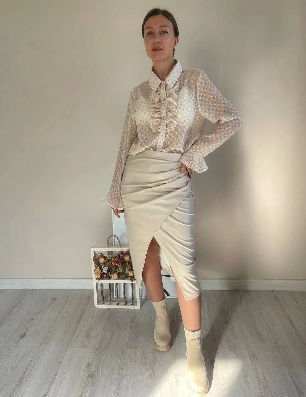 Women's Midi Leather Skirt Sexy Split High Waist Front Slit Skirts Ladies Black Faux Leather Folded Skirt For Women