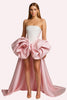 Diamond-Beaded Pink Sheer Gown Spaghetti Strap Pearls Sequins Structured Flowers High Split Mesh Trendy Celebrity Party Gown