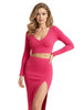 Women's Long Sleeve Crop Top Shorts Set 2-Piece